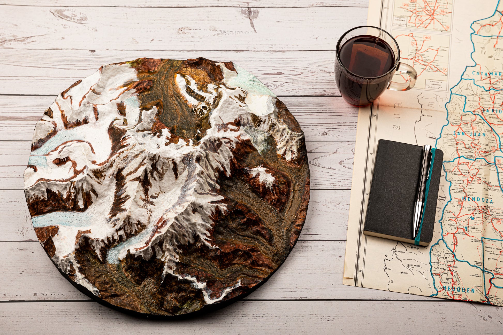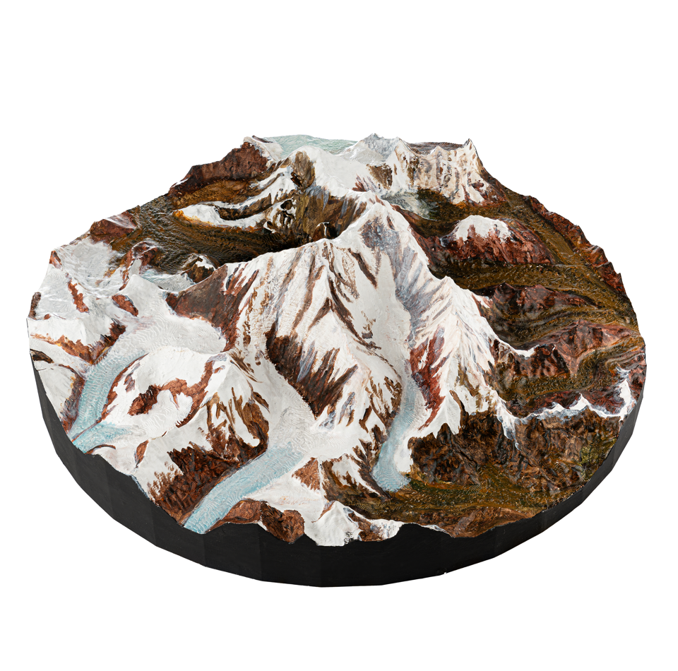 Maqueta 3D pintada a mano de la montaña más grande del mundo.